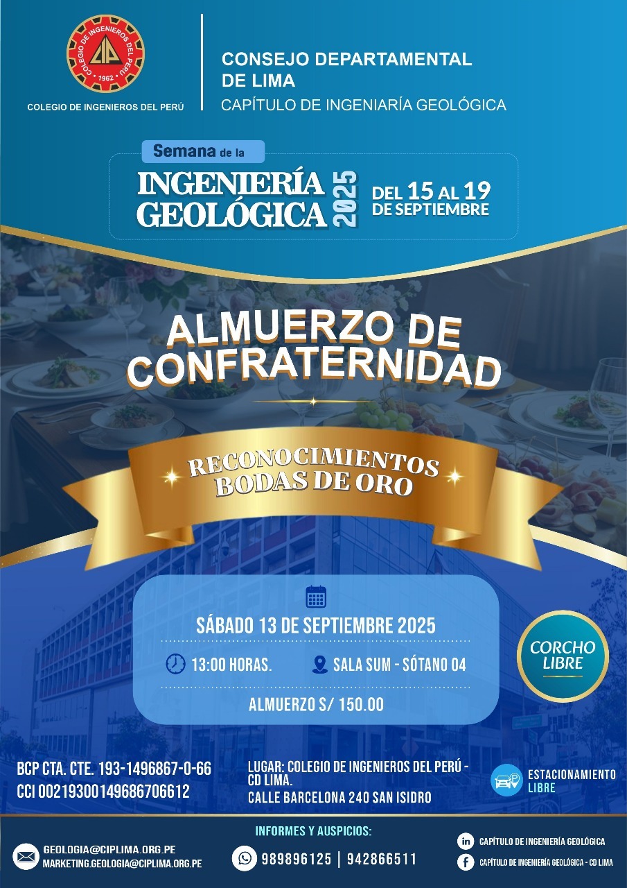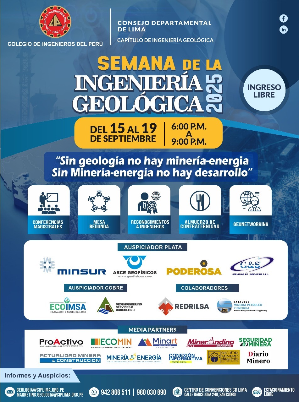 El despacho del Lic. Diego Bazán Congresista de la República, el Instituto Peruano en Ciencias de la Tierra y otras instituciones anunció la realización de los actos celebratorios por el DIA DEL MINERO 2025, evento anual que se desarrollará del 10 de diciembre del 2025 en el CONGRESO DE LA REPUBLICA. de la ciudad de Lima.