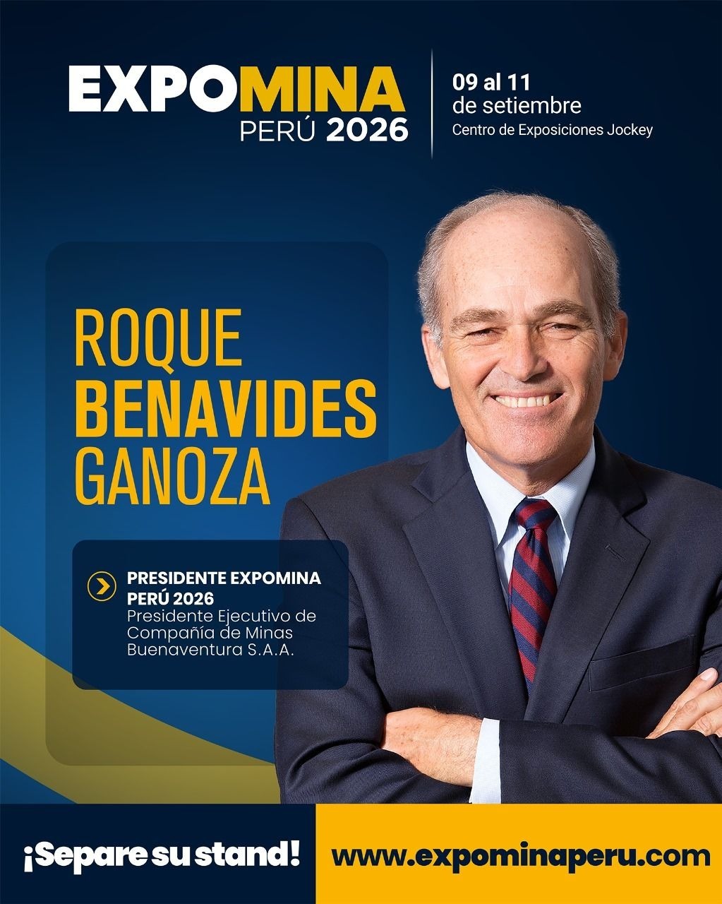 Nos complace anunciar que Roque Benavides Ganoza, Presidente Ejecutivo de Compañía de Minas Buenaventura, asume la presidencia de EXPOMINA PERÚ 2026, el evento minero más importante del país.